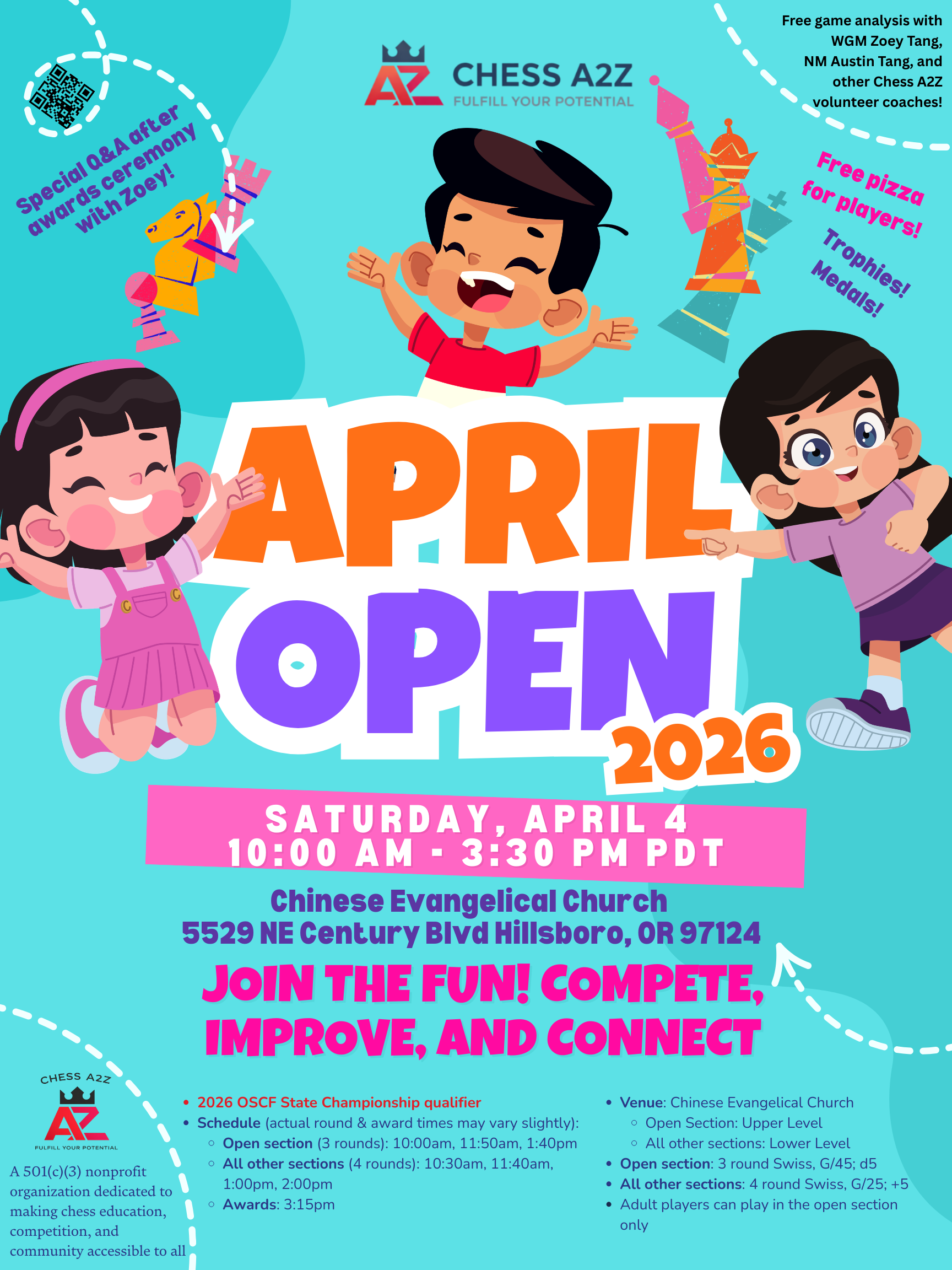 For details and to register, please go to: https://chessa2z.org/event/chess-a2z-april-open-2026/