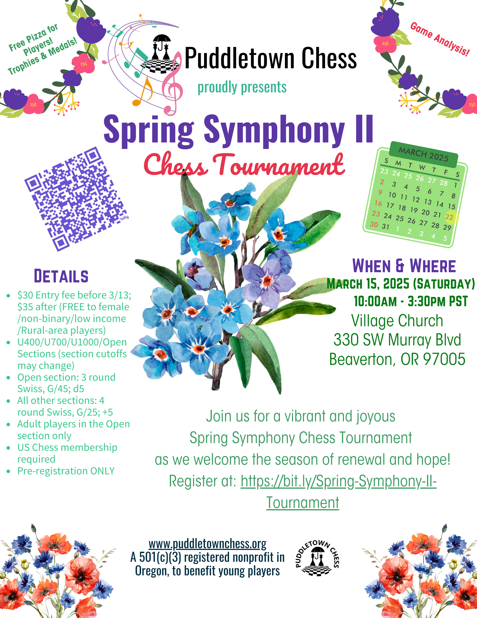 Click here to register and learn more: https://puddletownchess.org/event/spring-symphony-ii-chess-tournament/