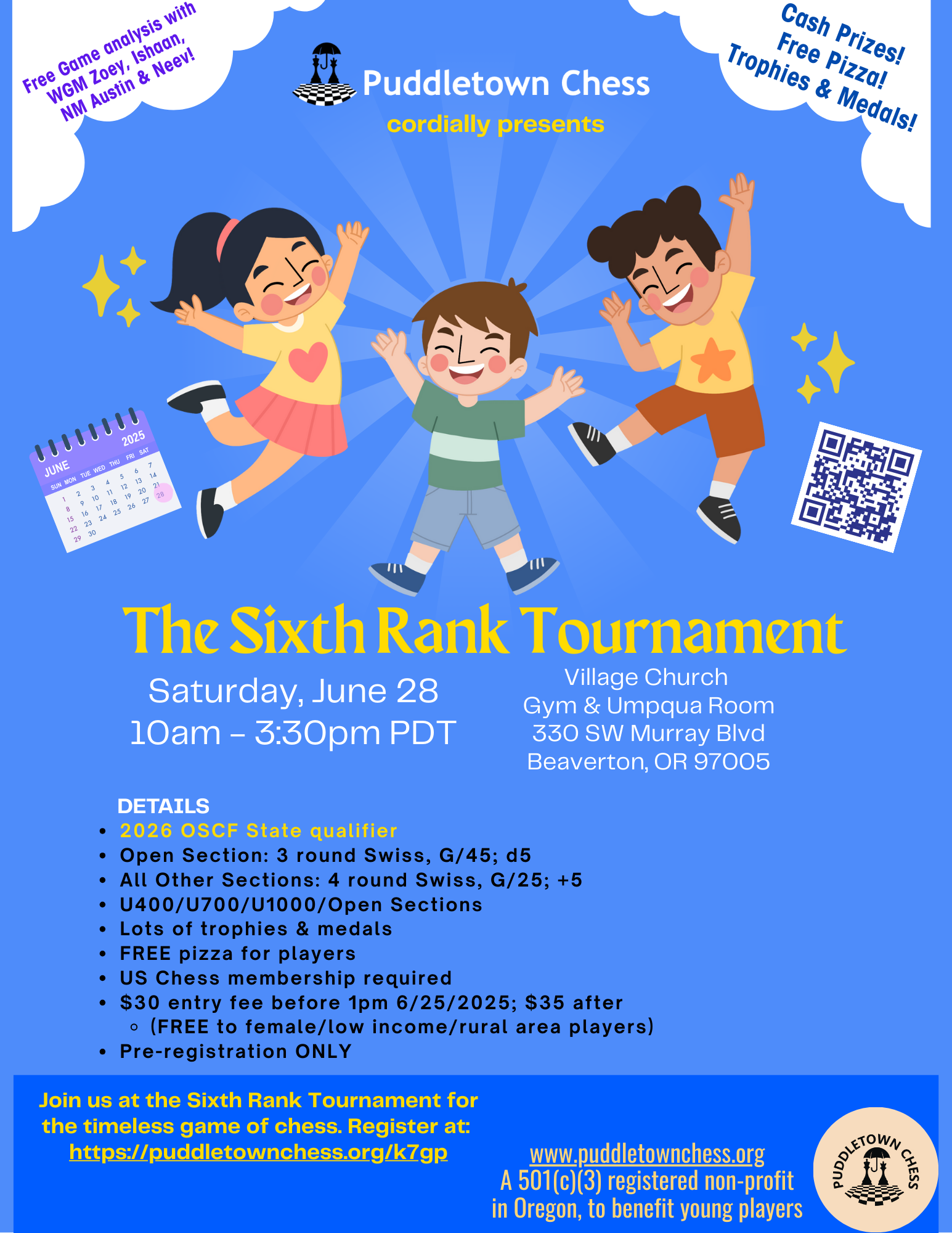 Click here to register and learn more: https://puddletownchess.org/event/the-sixth-rank-tournament/