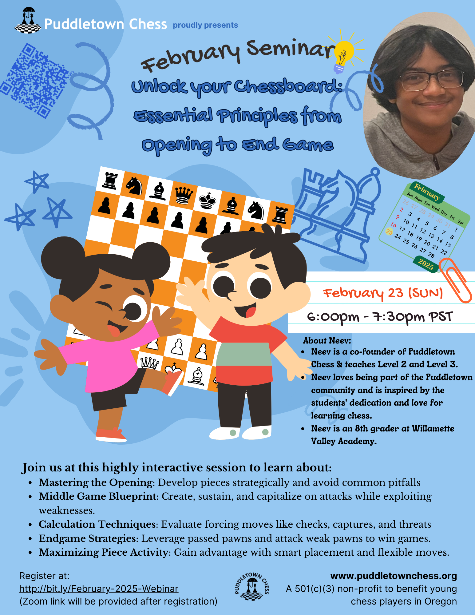 Unlock your Chessboard: Essential Principles from Opening to End Game - Puddletown FREE Webinar